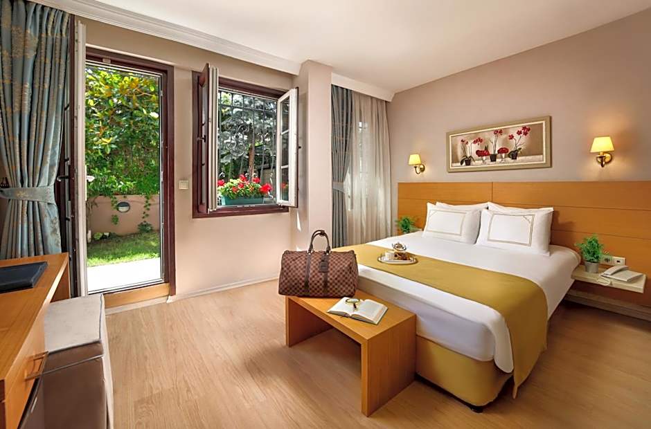 After you've savored the delicious breakfast and explored the enchanting streets of Istanbul, you'll return to the Almina Hotel for even more delightful experiences! Whether you're seeking solitude or a vibrant atmosphere, the hotel's stunning terrace and sun deck offer the perfect spots to relax, sip a refreshing drink, and soak in the captivating views. The lush garden surrounding the hotel provides a peaceful oasis that invites guests to unwind and recharge after a whirlwind of city exploration. Picture yourself nestled in a cozy corner with a good book, surrounded by the serene sounds of nature—what a perfect way to recharge your adventurous spirit!